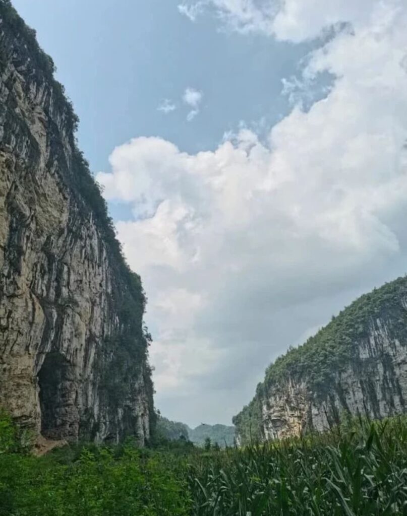 The gentleness of Binlang Valley is merely an appetizer. Turning a mountain ridge, the ruggedness of Jiaer Gorge suddenly comes into view. The gorge resembled a crack split open by a giant axe, with sheer rock walls rising vertically on either side. At its narrowest point, only one person could pass sideways. Looking up, the sky was compressed into a sliver of silver.